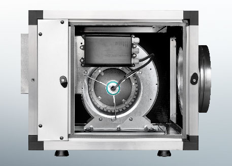 Unidade de extração com ventilador de motor EC diretamente acoplado para extração de ar em locais de pequena e média dimensão.