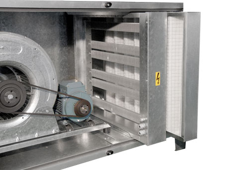 Em tudo semelhante aos grupos de aspiração com a possibilidade de incorporar uma base para aplicação opcional de 2 pré-filtros e de bateria de resistências. Tampa de acesso em duas partes, podendo facilmente alterar a posição da visita.