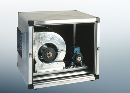 Unidade de extração com ventilador de transmissão indireta para extração de ar em edifícios de média e grande dimensão.