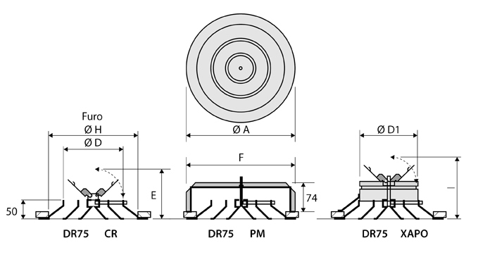 E-DR-75 Difusor circular de cones fixos de alta indução em alumínio anodizado, com ou sem registo de caudal. |
