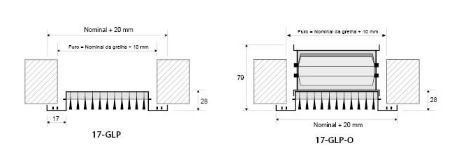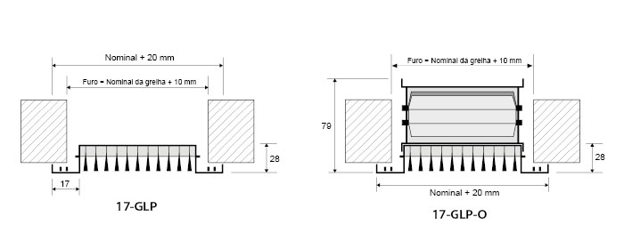 17-GLP Grelha linear de parede e tecto com aro. Lâminas fixas a 0° ou 45°. 17-GLP-0 Modelo com registo. |
