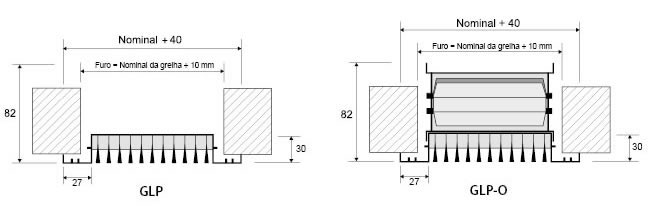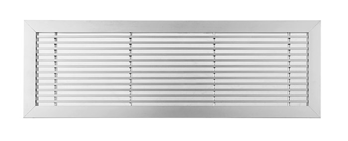GLP Grelha linear de parede e tecto com aro. Lâminas fixas a 0° ou 45° GLP-0 Modelo com registo. |