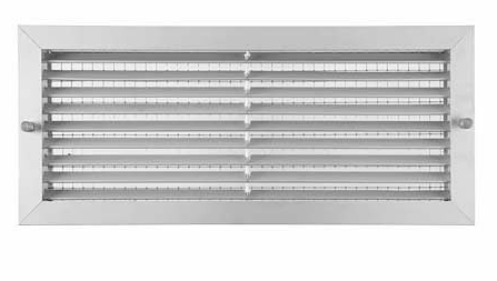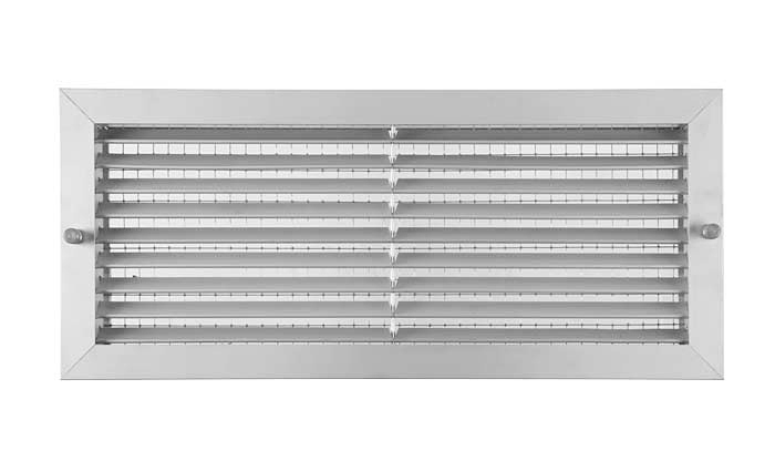 GPF As grelhas GPF são grelhas do tipo FH, mas fornecidas com um aro de montagem e uma rede para incorporar o filtro (não fornecido). Para facilitar a manutenção possuem na parte frontal 2 parafusos para remoção da grelha. |