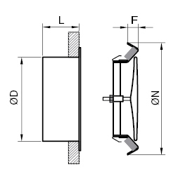 Composição Válvula com cone interior ajustável Fornecida com aro de montagem em aço inoxidável. |