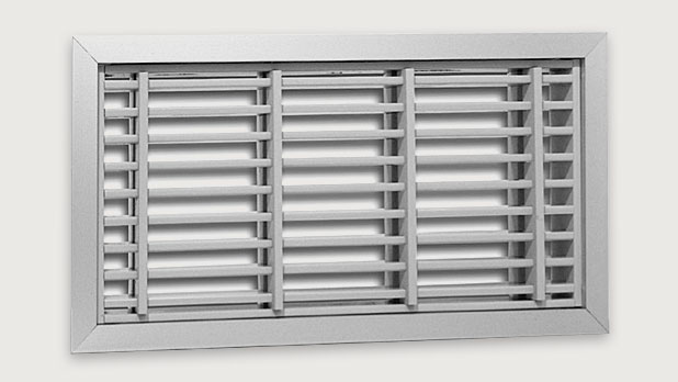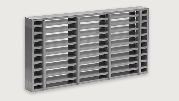 Grelhas rectângulares compostas por um aro em alumínio K, e lâminas de material intumescente.